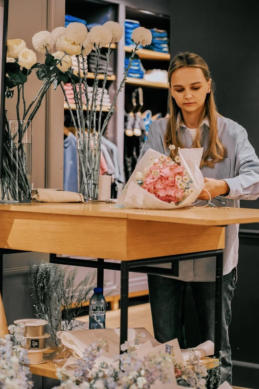 Unsere Flower Bar bringt florale Handwerkskunst, persönliche Geschenke und Liebe in deinen Store: