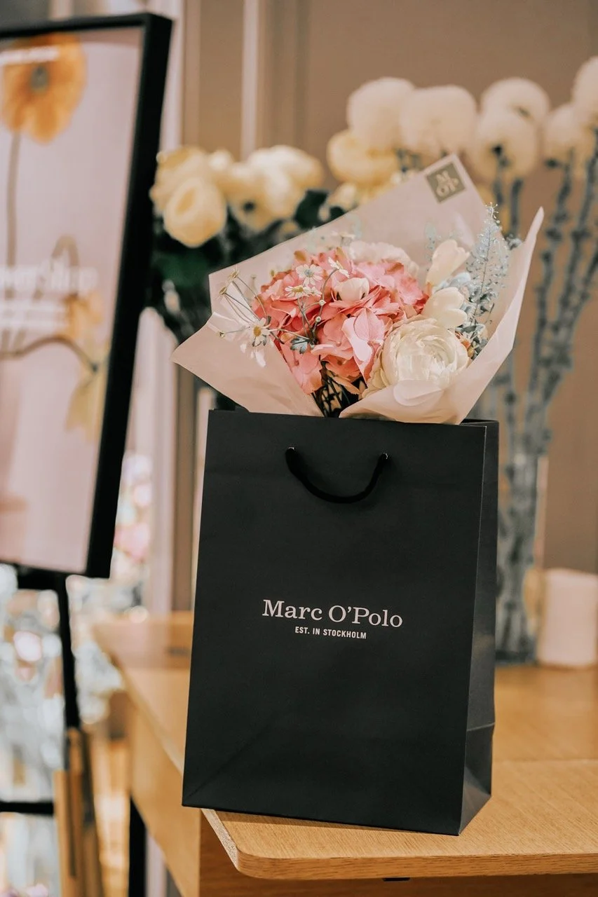Mit unserer Flower Bar wird’s persönlich, emotional und memorable: Frische oder getrocknete Blumen, individuell gebundene Bouquets, gebrandete Flower Bags – und mittendrin deine Marke zum Anfassen.